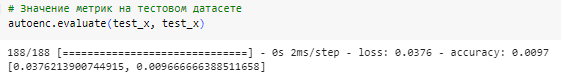 Метрики loss и accuracy на тестовом датасете с помощью evluate: