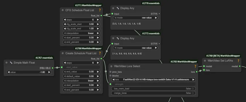 - EnhanceMotion: <lora:Wan2.2-Lightning/Wan2.2-I2V-A14B-4steps-lora-rank64-Seko-V1/high_noise_model.safetensors: -1 ~ 1>